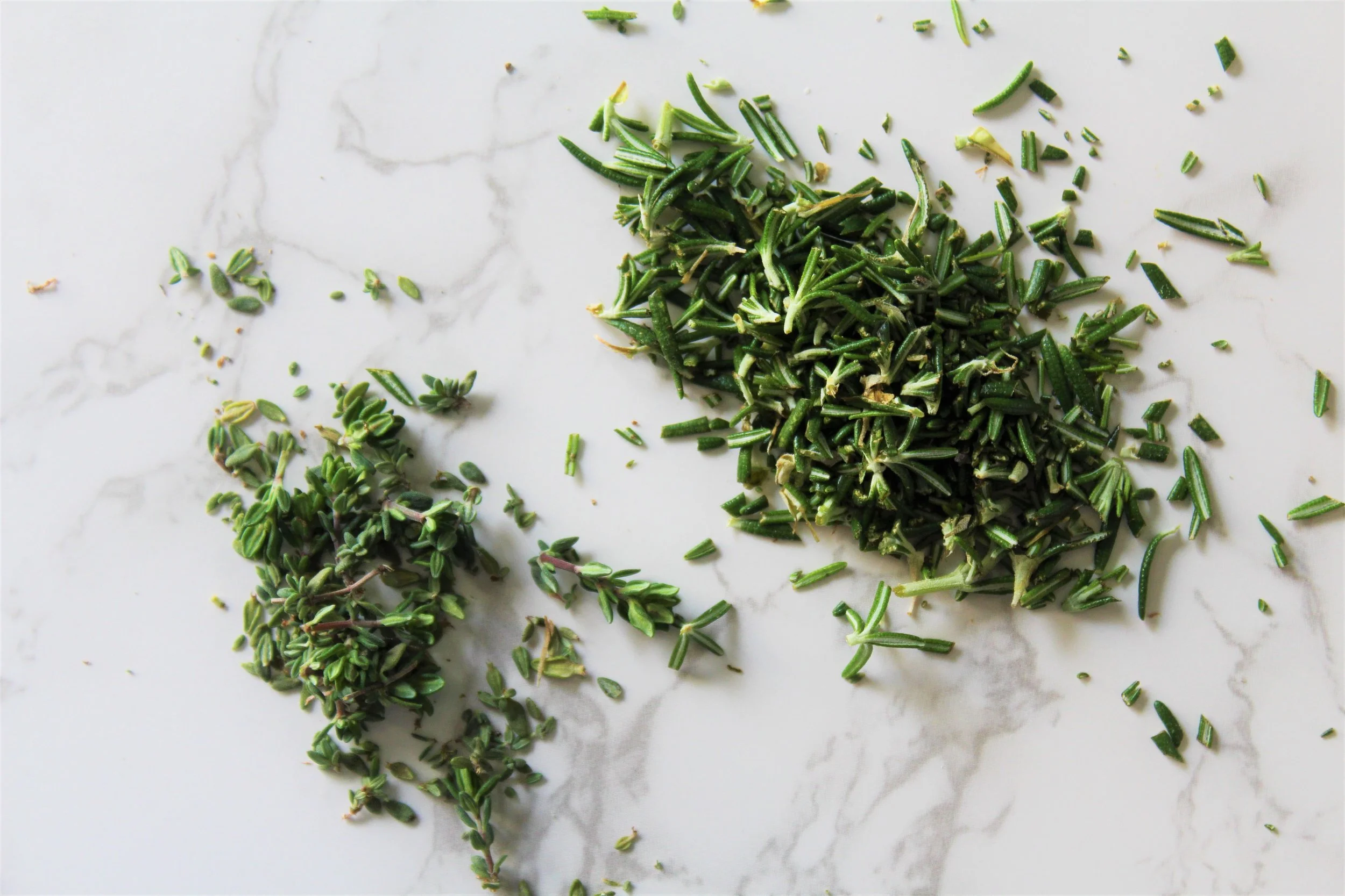 Sprinkle with remaining rosemary and thyme springs and serve.