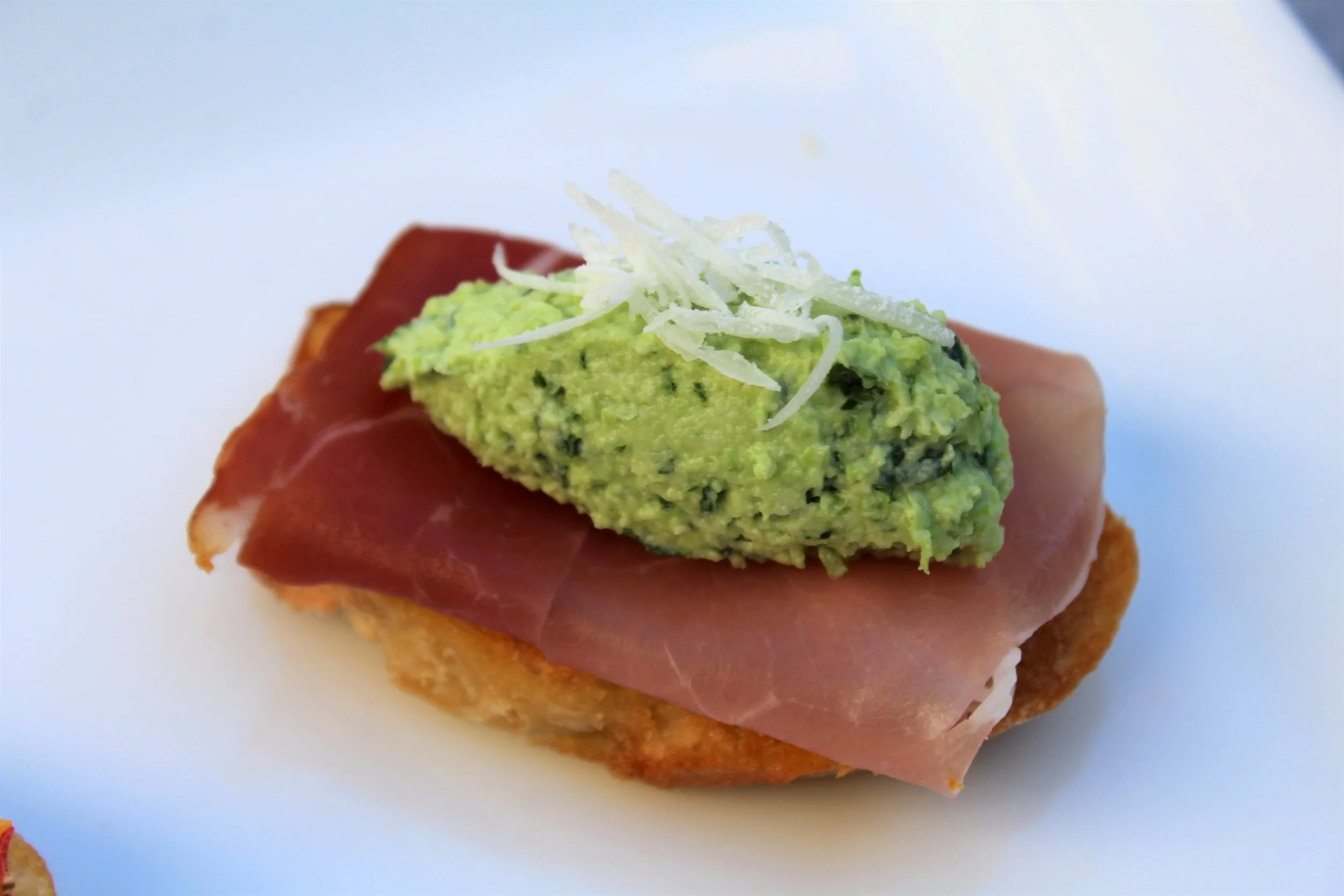 crostini with Prosciutto and Edamame & Arugula Cream Cheese