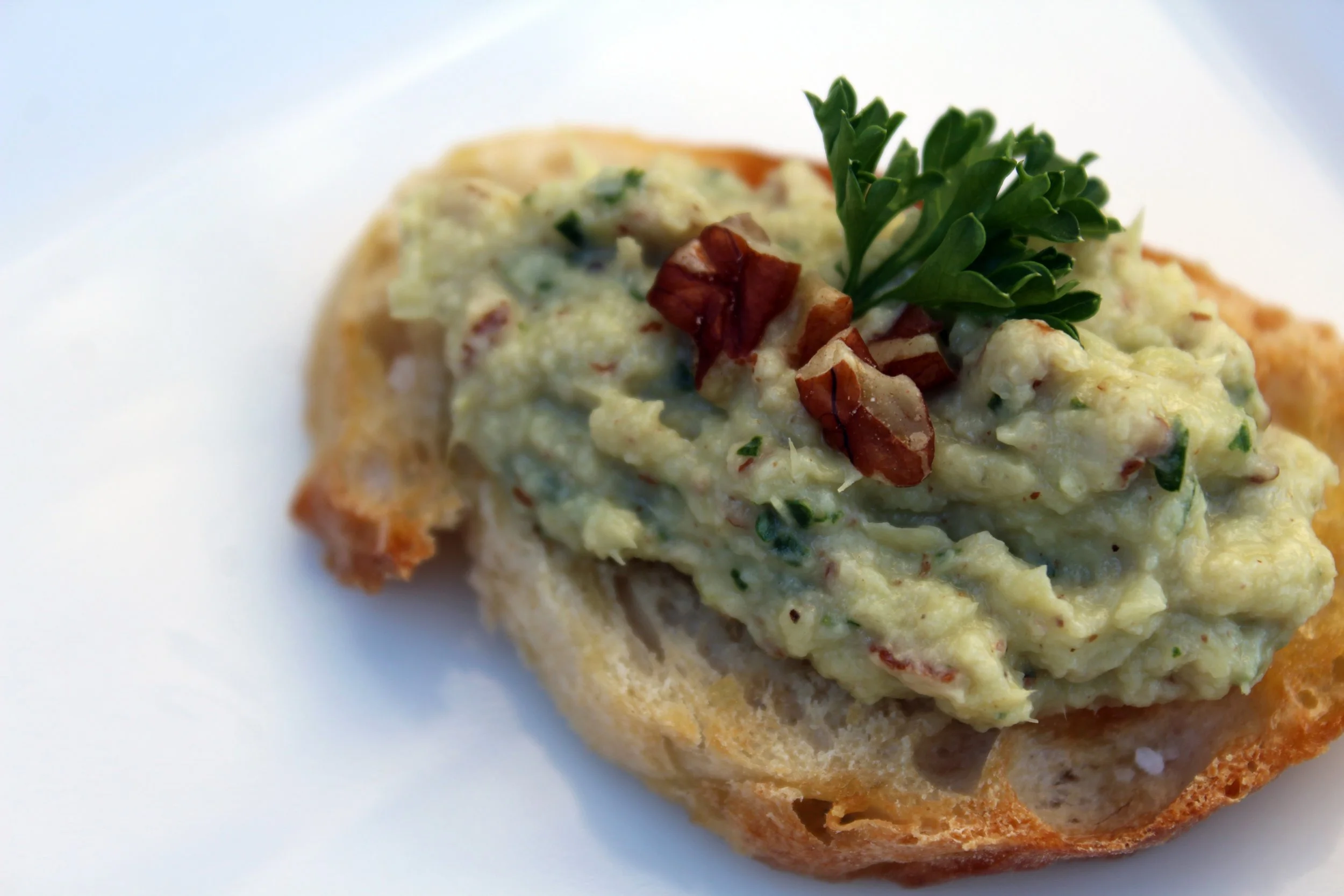 Preparation - In a food processor, process all the ingredients until desired consistency. Adjust seasonings. Top toasts with mixture and garnish with additional pecans and parsley.